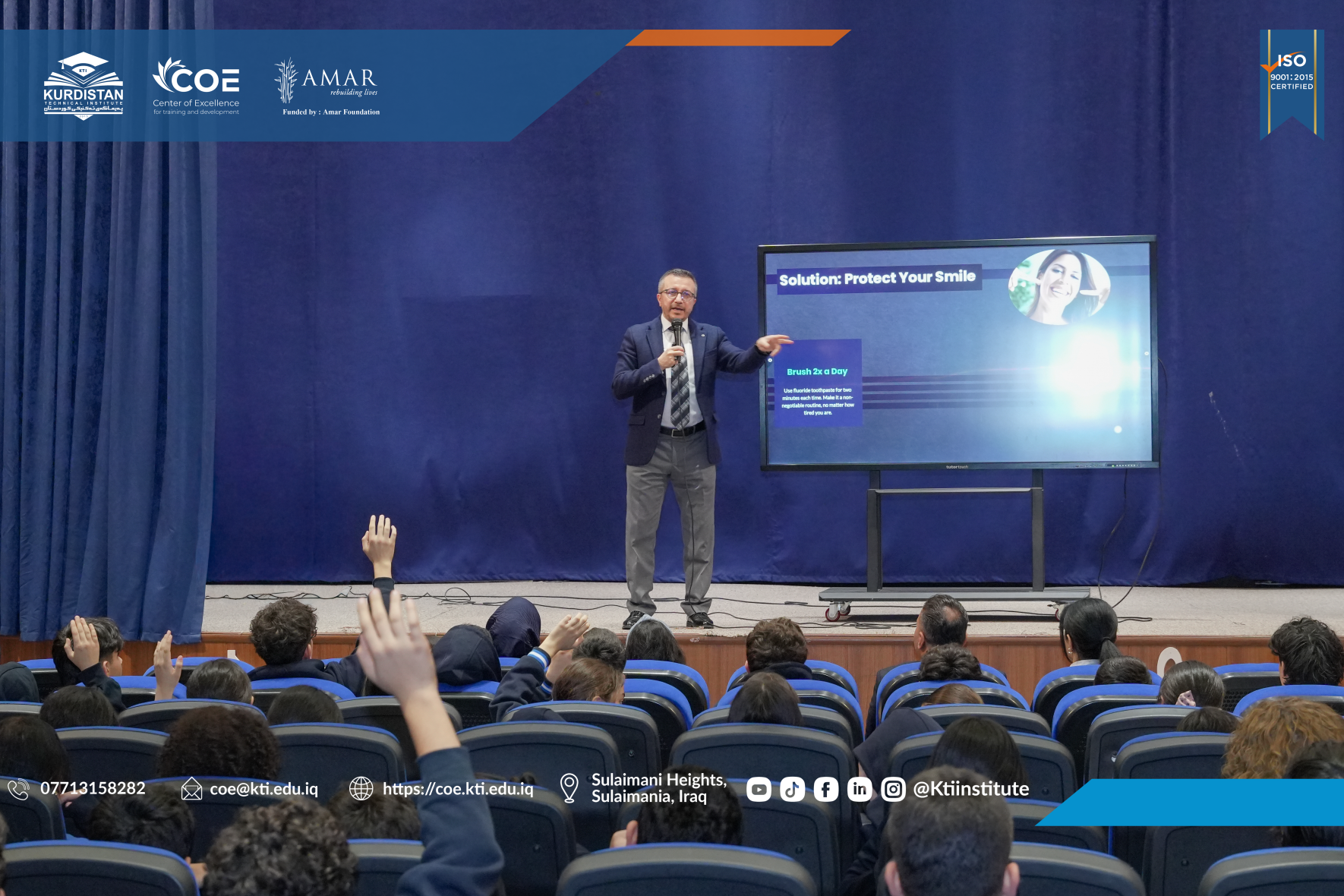 سەنتەری ئێکسلێنس بەهاوبەشی بەشی یاریدەدەری پزیشکی ددان سیمینارێکی هاوبەشیان ئەنجامدا بۆ فێڕخوازانی قۆناغی (٩) ی بنەڕەتی لە کۆمەڵگەی پەروەردەیی کورد جینەسی(٢) ، مەبەست لەم سیمینارە پێدانی هۆشیارییە سەبارەت بە کاریگەری فشاری سۆزداری لەسەر تەندروستی ددانی فێرخوازان (پۆلی ٩). ئامانجی سیمینارەکە یارمەتیدانی فێرخوازان و پەروەردەکارانە بۆ ئەوەی تێبگەن کە چۆن فشاری ئەکادیمی و فشاری دەروونی دەبێتە هۆی کێشەی تەندروستی دەم و ددان وەک وردکردنی ددان و هەوکردنی پووک و برینی ناو دەم.لە ڕێگەی ئەم سیمینارەوە بەشداربووان فێر دەبن دەربارەی: